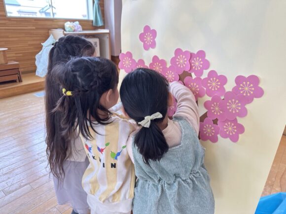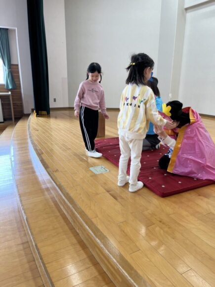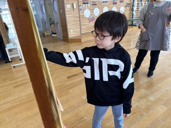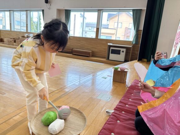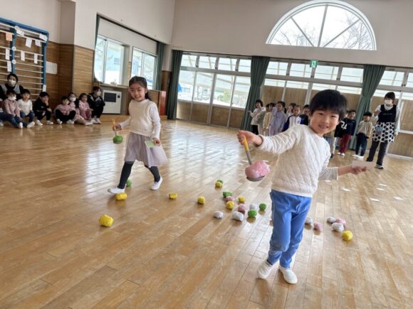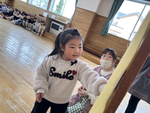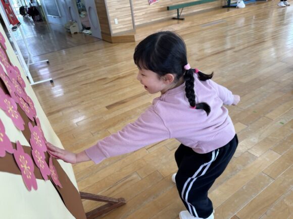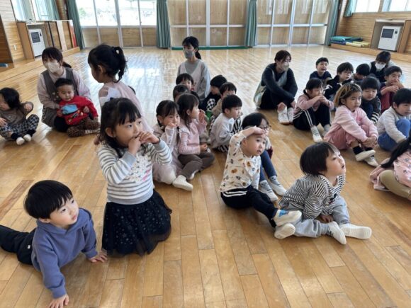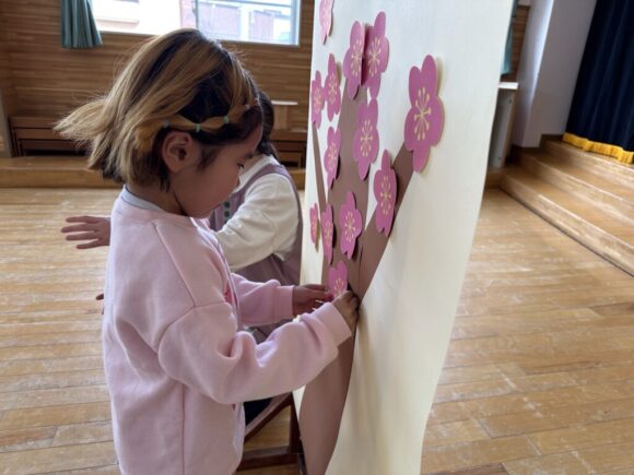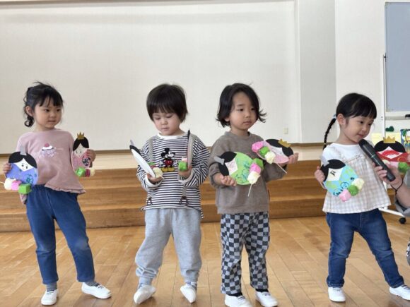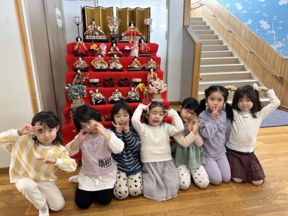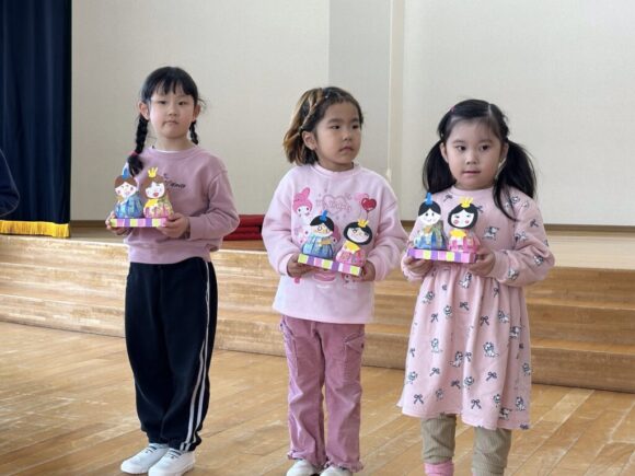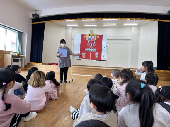 桃の節句の今日はひなまつりの集いです。園の一年は季節の様々な行事があり、歴史や文化にも触れながら、子どもの健やかな成長を願いながら皆でお祝いします。